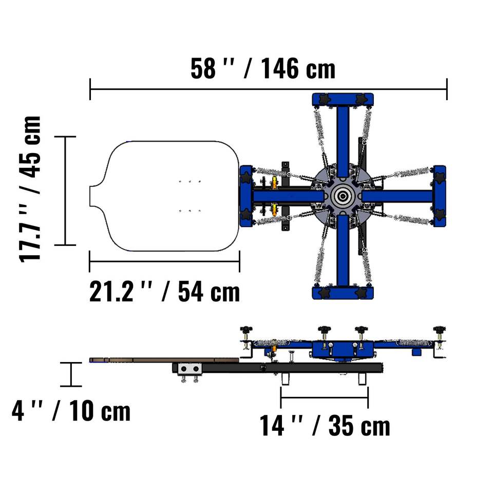เครื่องพิมพ์สกรีน 1 สเตชั่น 4 สี ขนาด 21.2x17.7 นิ้ว/54x45 ซม. แบบกดสองชั้น หมุนได้ 360 องศา สำหรับพิมพ์สินค้า