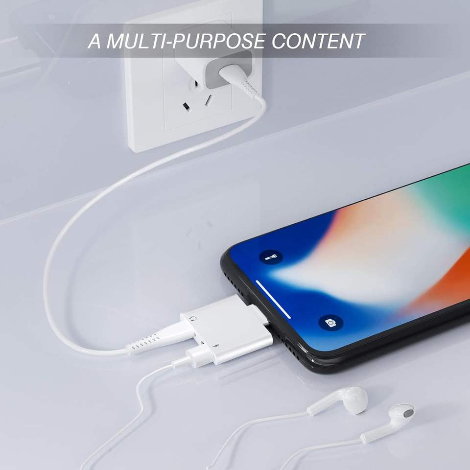 อะแดปเตอร์เสียบสายเคเบิลดองเกิลสำหรับชาร์จสัญญาณเสียง1อิน2ใน1ที่ชาร์จ AUX อะแดปเตอร์หูฟังเพลงสำหรับ Apple