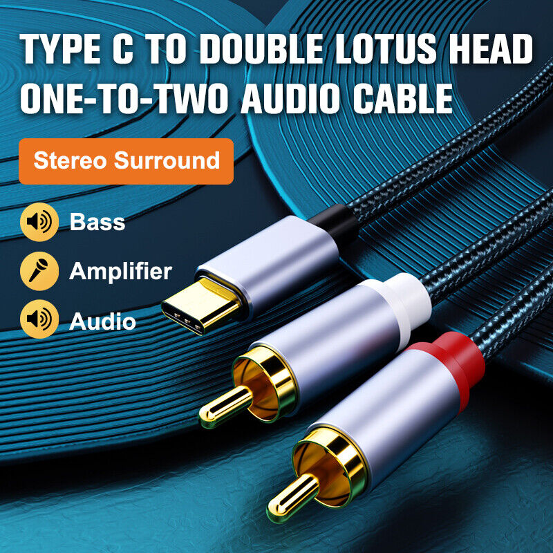 1 ต่อ 2 พอร์ต USB C ประเภท C ไปยังหัวต่อ RCA แบบผู้ชาย 2 ช่อง สายเสียงสเตอริโอ 2RCA สาย Aux Y ตัวแยกสัญญาณ เครื่องขยายเสียงลำโพง ZF