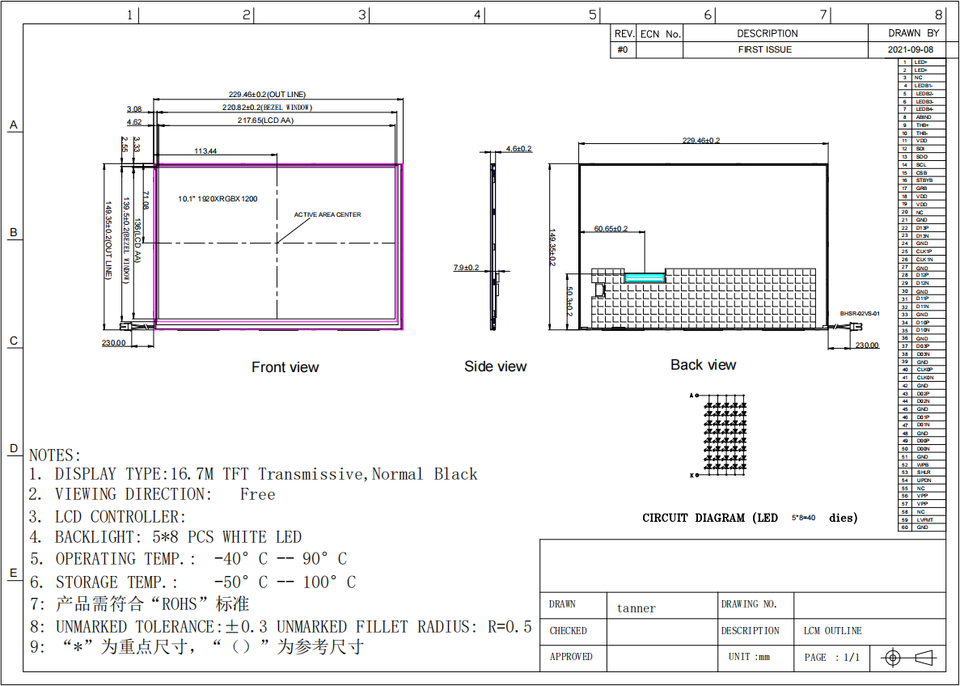 ขนาดโมดูล:229.46(W) x149.35(H) x4.6 (D) มม