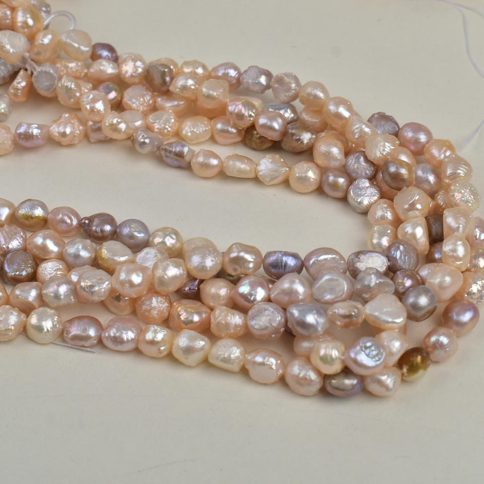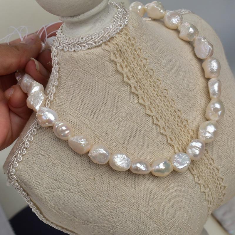 สร้อยคอมุกน้ำจืดเอดิสันทรงกลมขนาด 10-12 มม. ของเวนชี ผลิตภัณฑ์กึ่งสำเร็จรูปจากธรรมชาติ สีขาวอมชมพู รูปทรงบาโรก จากประเทศจีน