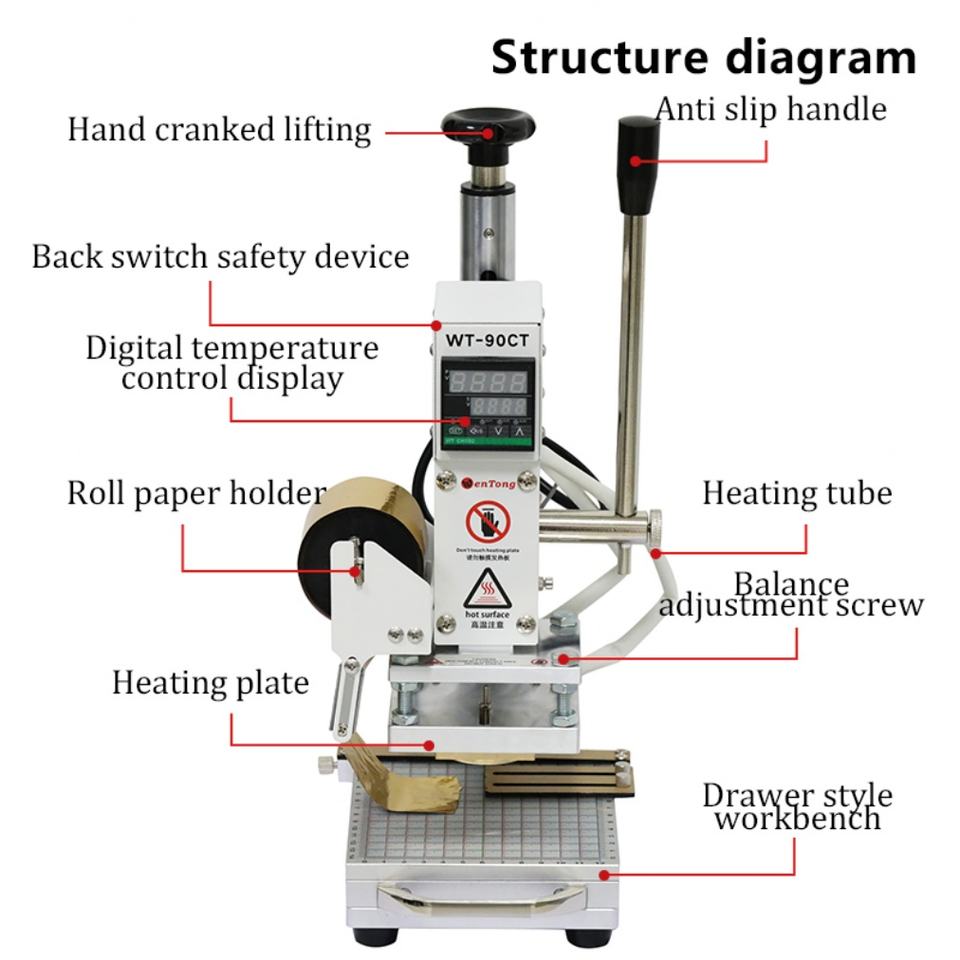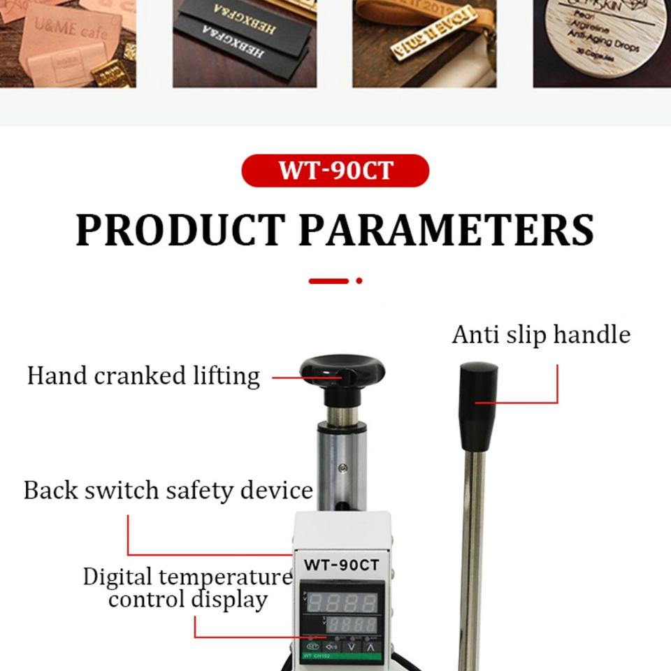 เครื่องปั๊มร้อนแบบแมนนวลขนาด 10*13 ซม. สำหรับปั๊มโลโก้และตัวอักษร เครื่องปั๊มร้อนสำหรับหนัง กระดาษ ไม้ PVC การ์ด