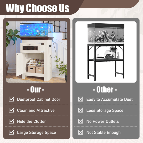 ขาตั้งตู้ปลาขนาด 10-15 แกลลอน รับน้ำหนักได้ 198 ปอนด์ โต๊ะตู้ปลาพร้อมตู้เก็บของแบบลิ้นชัก มีปลั๊กไฟในตัว สำหรับตู้ปลา