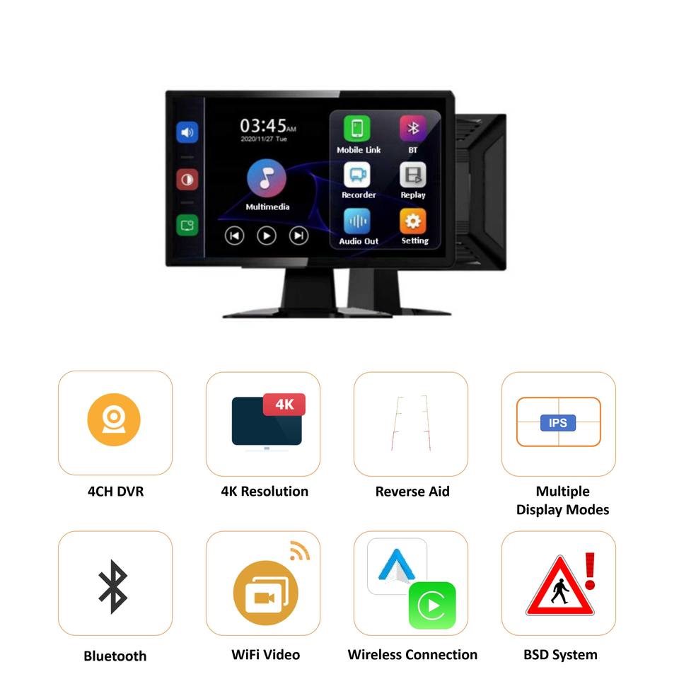 10.1Inch BSD Touchscreen Carplay Android Auto BT 4CH Wireless DVR Monitor MP5 Car Trailer Backup Camera BSD Monitor