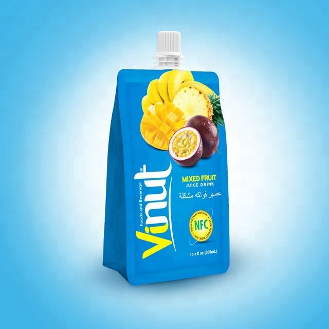 10.1 Floz กระเป๋าใส่น้ำผลไม้แบบตั้งได้ถุงใส่น้ำผลไม้แบบผสมทำจากพลาสติกก้นแบนออกแบบได้ตามที่ต้องการ