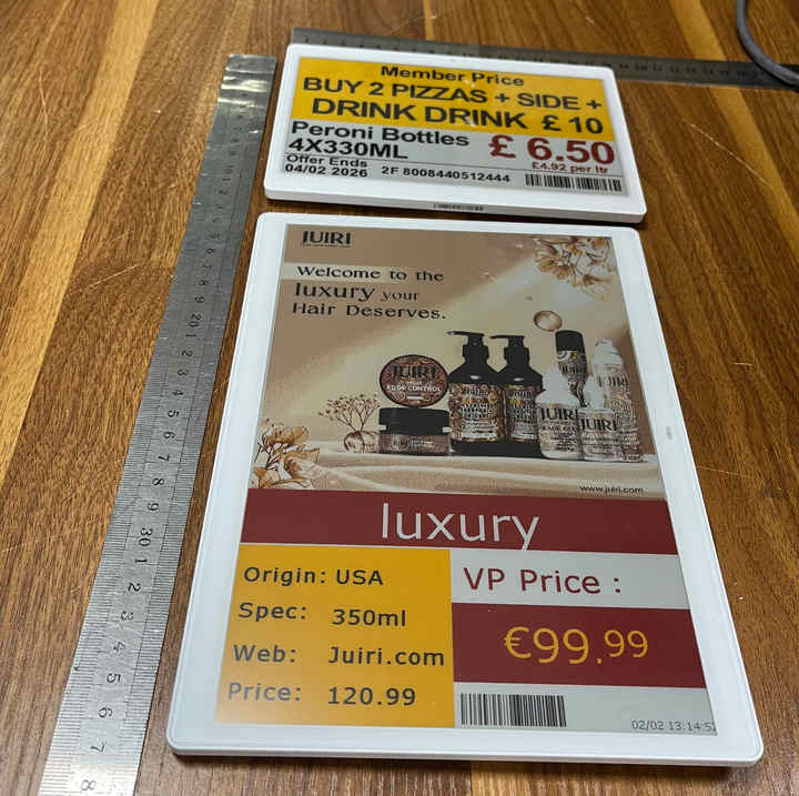 ป้ายราคาอิเล็กทรอนิกส์แบบ E-Ink ขนาด 10.2 นิ้ว ระบบ Bluetooth Ble พร้อมจอแสดงผล E-Paper สำหรับติดขอบชั้นวางสินค้าในซูเปอร์มาร์เก็ต รองรับ ESL 4 สี