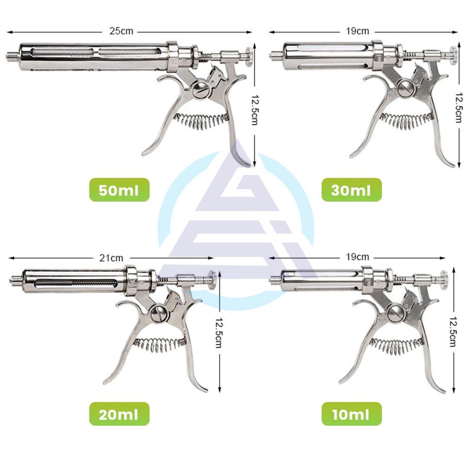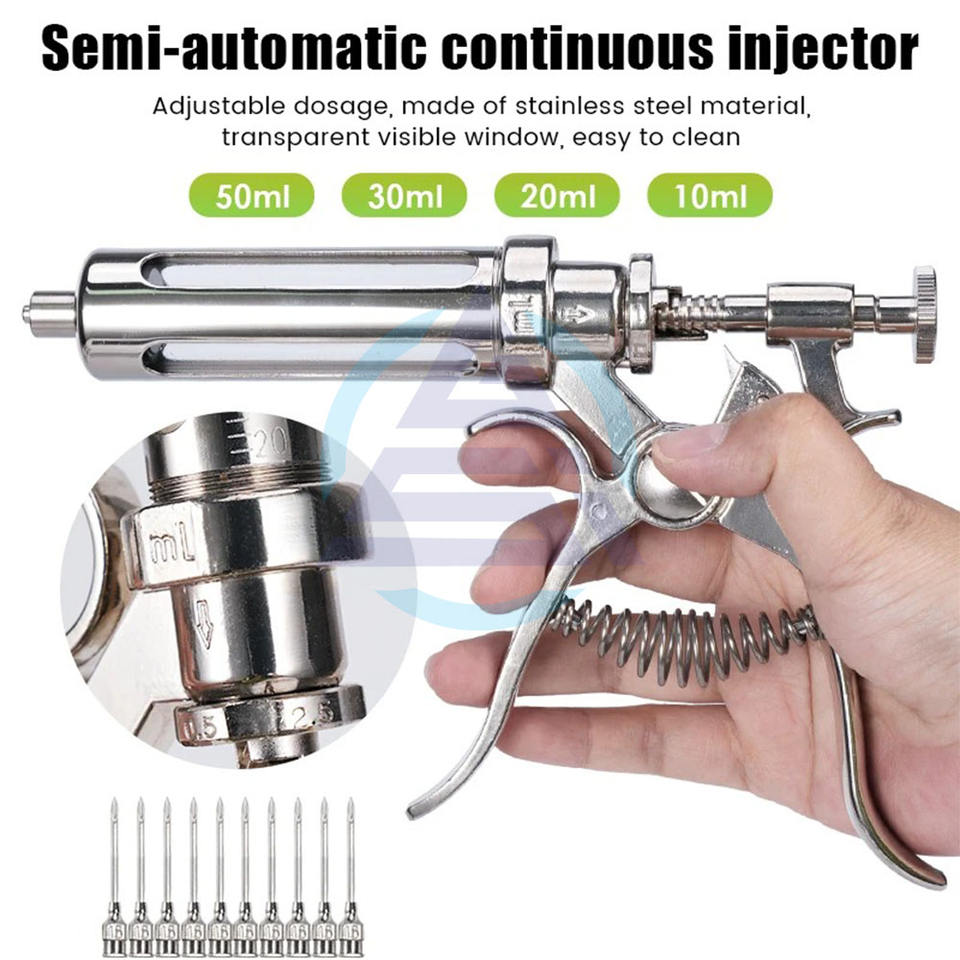 กระบอกฉีดยาอัตโนมัติขนาด 10/20/30/50 มล. พร้อมเข็มฉีดยาปรับได้สำหรับฉีดวัคซีนสัตว์ปศุสัตว์ เช่น สุกร โค แกะ ไก่
