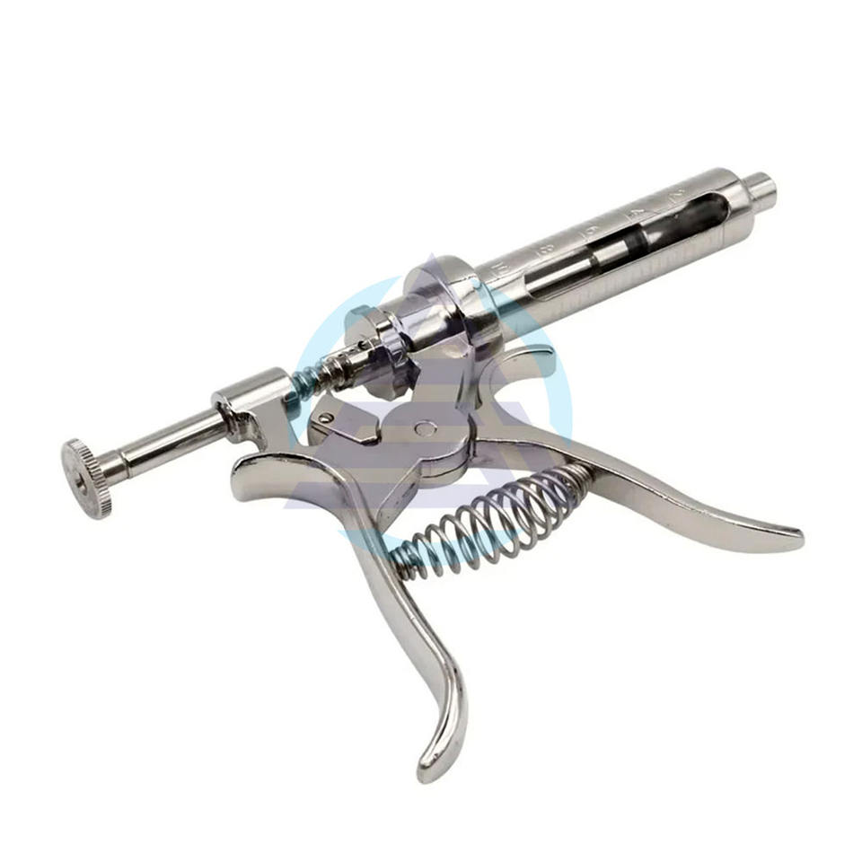 กระบอกฉีดยาสัตว์แบบต่อเนื่องขนาด 10/20/30/50 มล. ทำจากสแตนเลสแบบกึ่งอัตโนมัติสำหรับฉีดวัคซีนให้กับวัว แกะ หมู