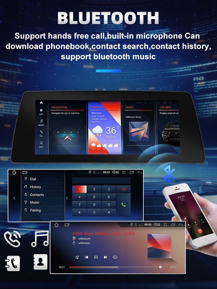 GPS ในตัว, เครื่องเล่น MP3 / MP4, หน้าจอสัมผัส, กล้องสำรองการรวมกัน