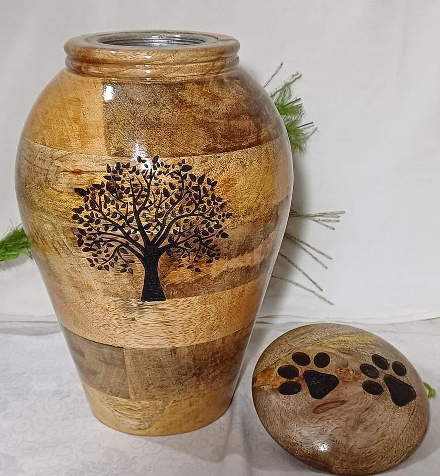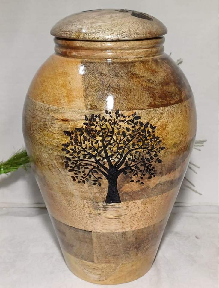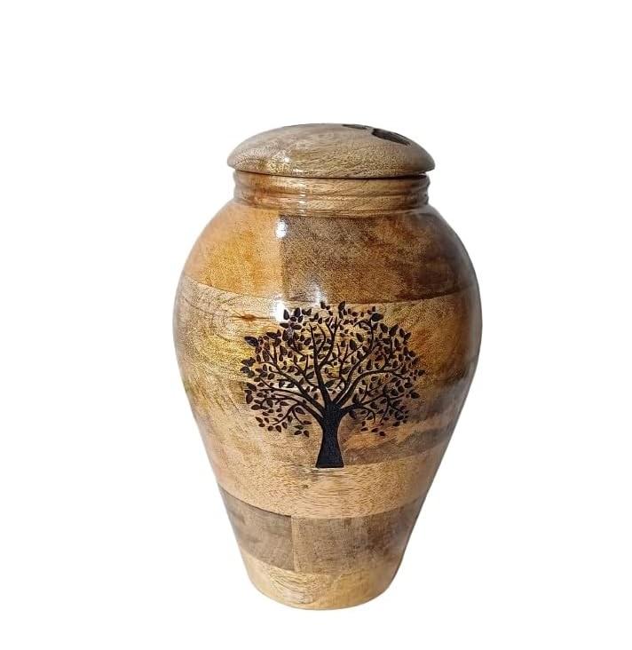 10.5 "ทําด้วยมือไม้มะม่วงUrnsอนุสรณ์ไม้Yeepsakebeniedผู้ใหญ่เถ้าโถขยะพร้อมฝาปิดและแกะสลักต้นไม้สําหรับมนุษย์และสัตว์เลี้ยงเถ้า