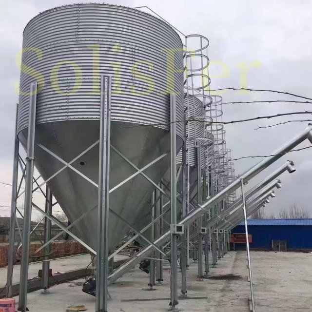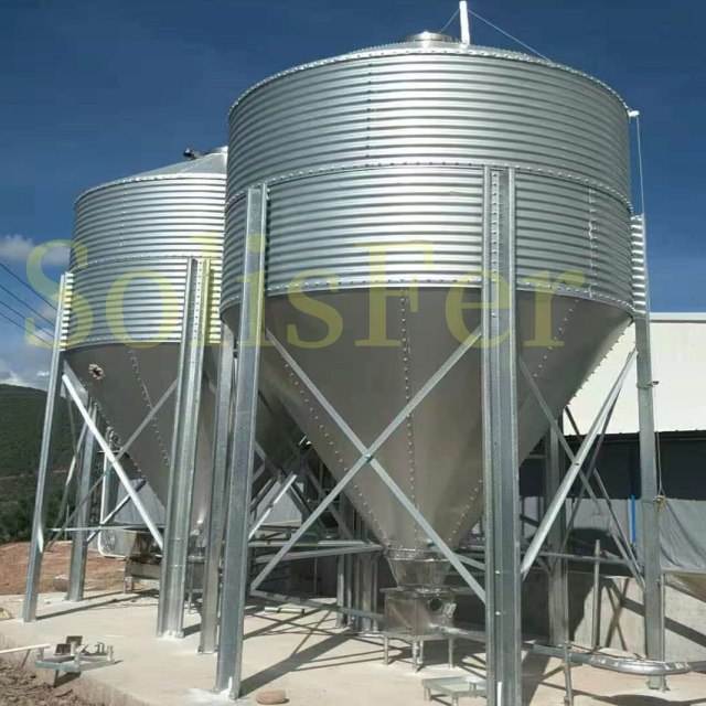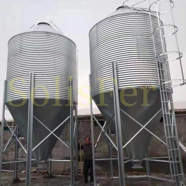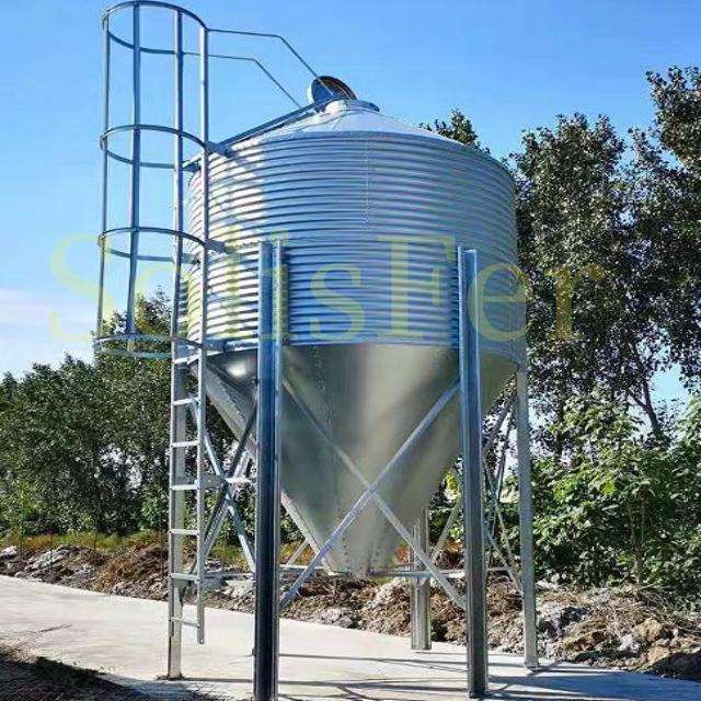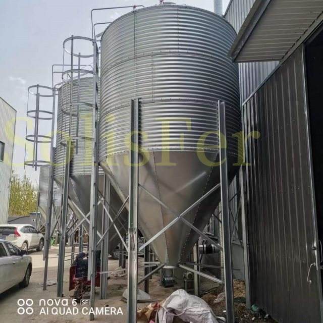 10-50ตันถังก้นป้อนวัตถุดิบถังเก็บอาหารทำจากเหล็กใช้สำหรับให้อาหารไก่ในฟาร์ม