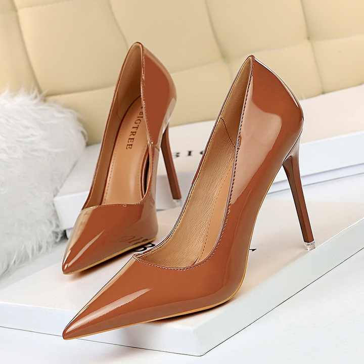 10.5CM/7.5CM Dropshipping Escarpins Femme Big Size 43 Formal Trendy Reflective Pointed Toe Nude High Heeled Women's Pumps Shoes