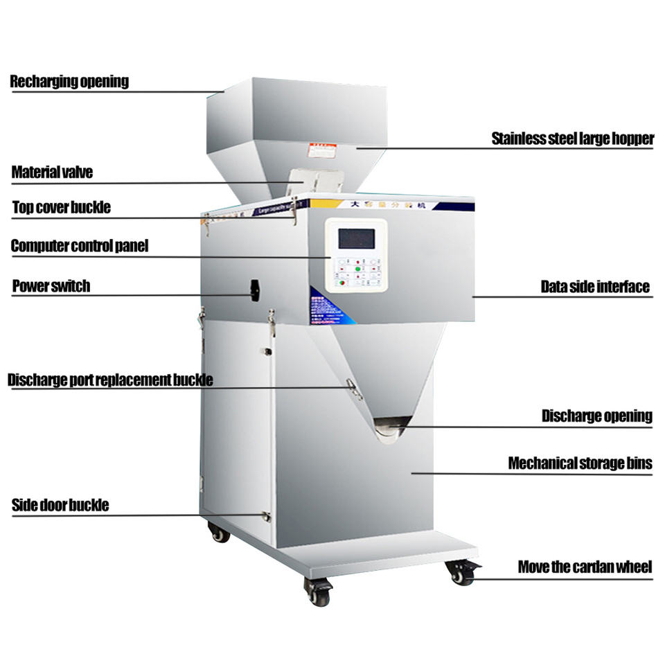 เครื่องบรรจุผงและเม็ดแบบอัตโนมัติ 10-9999gcandy สำหรับบรรจุแป้ง พริกป่น วัสดุฮาร์ดแวร์ และอื่นๆ พร้อมระบบชั่งน้ำหนักและบรรจุปริมาณตามสั่ง