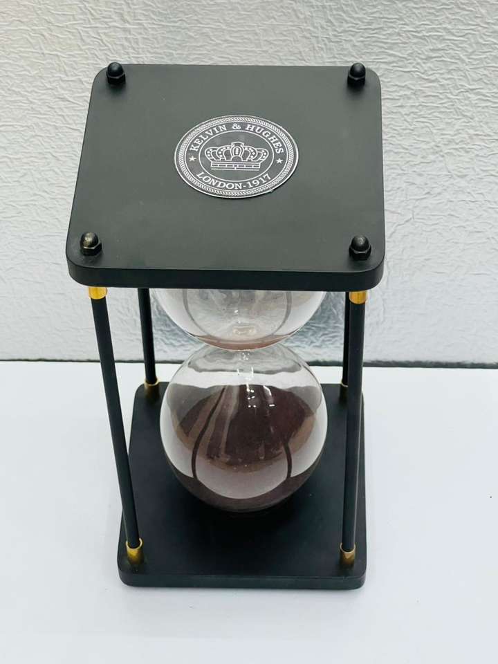 นาฬิกาทรายวินเทจ ขนาด 10 นิ้ว ตัวเรือนทองเหลืองและไม้