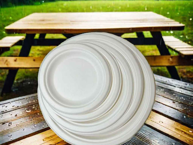 จานกระดาษเยื่อชานอ้อยแบบใช้แล้วทิ้ง ขนาด 10 นิ้ว ย่อยสลายได้ 100% ปลอดภัยสำหรับไมโครเวฟ กันน้ำ เหมาะสำหรับงานเลี้ยงกลับไปโรงเรียน