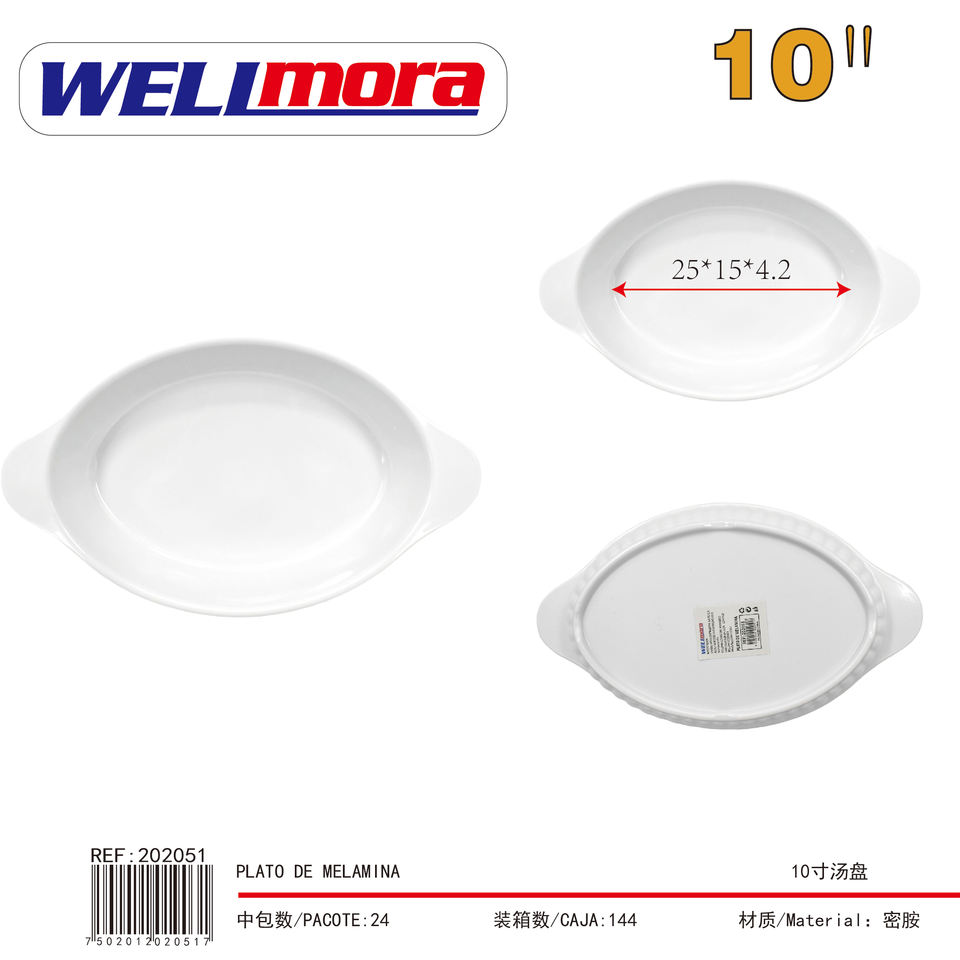 Welimora 10 Inch Oval Melamine Soup Plate With Handles For Hotels And Events