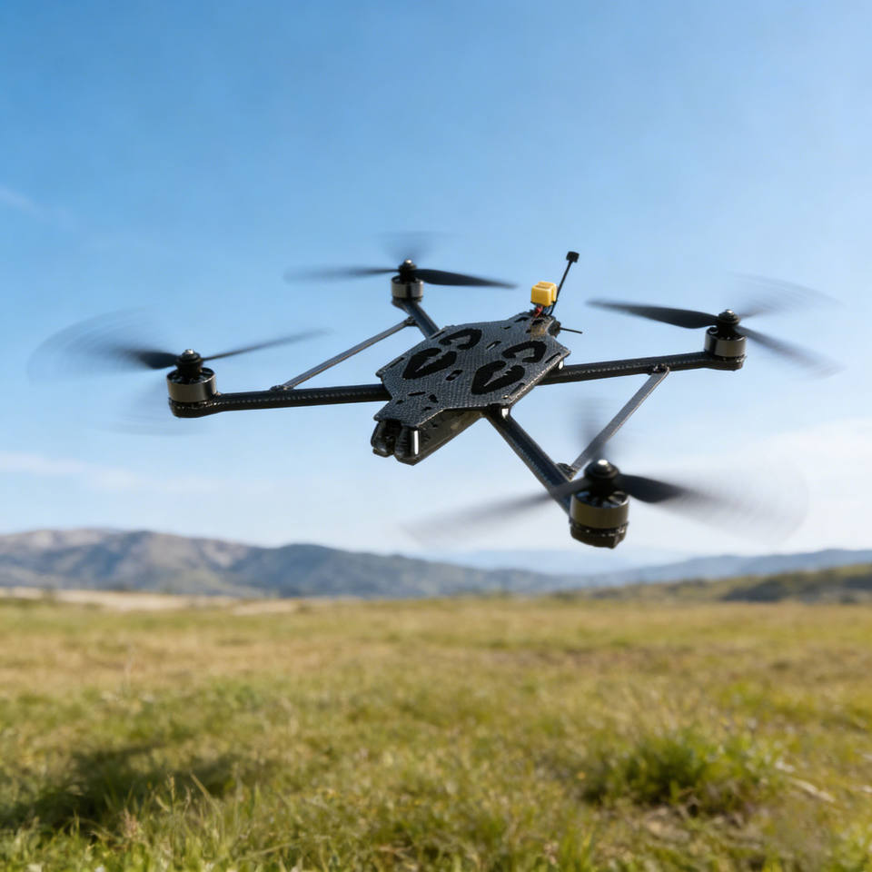 โดรน FPV ขนาด 10 นิ้ว พร้อมกล้อง ระยะบิน 10 กม. เวลาบิน 21-30 นาที รับน้ำหนักได้ 3.5-5 กก. ระบบระบุตำแหน่ง GPS ควบคุมระยะไกล