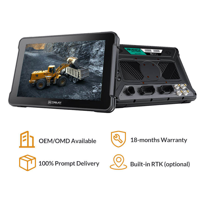 แท็บเล็ต Linux ขนาด 10 นิ้ว ทนทาน หน้าจออ่านได้กลางแจ้งแม้แสงแดดจ้า 1000 Nits | ระบบปฏิบัติการโยคโต | CANbus GPIO RS232 RS485 DC/ACC สำหรับงานเหมือง