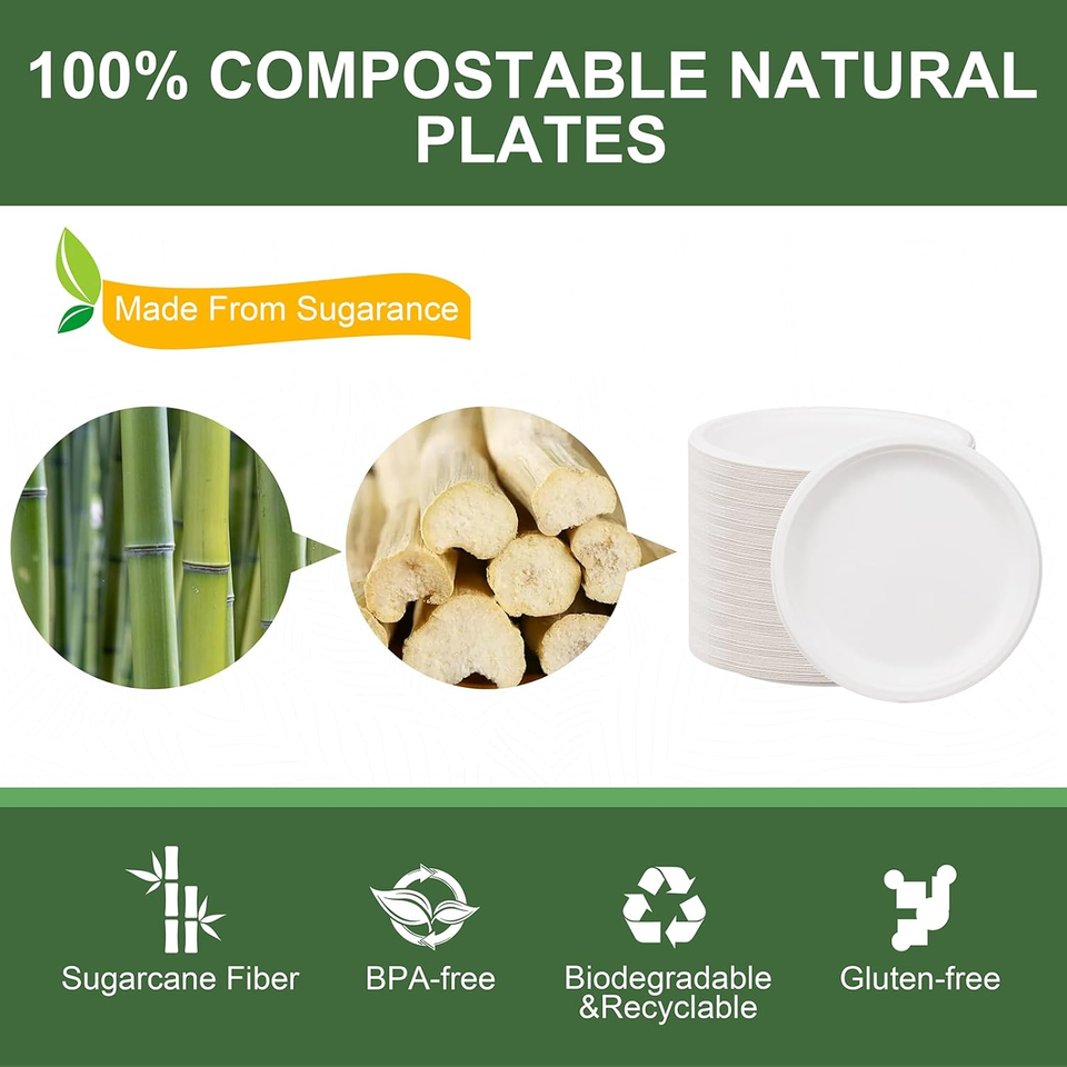 จานกระดาษกันน้ำขนาด 10 นิ้ว ปลอดภัยสำหรับอาหาร แพ็ค 125 ใบ ย่อยสลายได้ 100% แข็งแรง ทนทาน ใช้แล้วทิ้ง สำหรับใส่ก๋วยเตี๋ยว ทำจากชานอ้อย