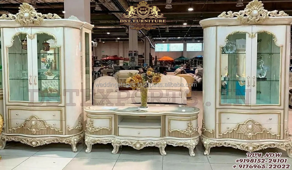 ตู้โชว์กระจกตู้โชว์ดีไซน์หรูหราชุดเฟอร์นิเจอร์หน่วยเครื่องถ้วยชามไม้สักสไตล์ทันสมัย
