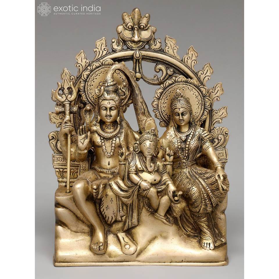 10 \ "ลอร์ดพระอิศวรครอบครัวนั่งบนประติมากรรมทองเหลืองบัลลังก์ kirtimukha