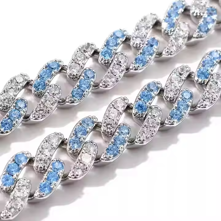 ห่วงโซ่ไมอามี่ขนาด10มม. สำหรับ925เพชรที่ใช้ตัดด้วยน้ำแข็งสำหรับปลูกในห้องปฏิบัติการประดับเพชรสีเงินและสีเหลืองชุบทองสไตล์คิวบานโซ่สำหรับเป็นของขวัญวันครบรอบแต่งงานของผู้ชาย