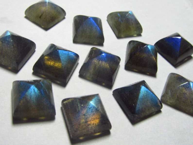10มม.-พีระมิดตัด Cabochon-สวยคุณภาพสูง-labradorite-ไฟฉูดฉาดที่น่าตื่นตาตื่นใจรายการที่หายากมาก-