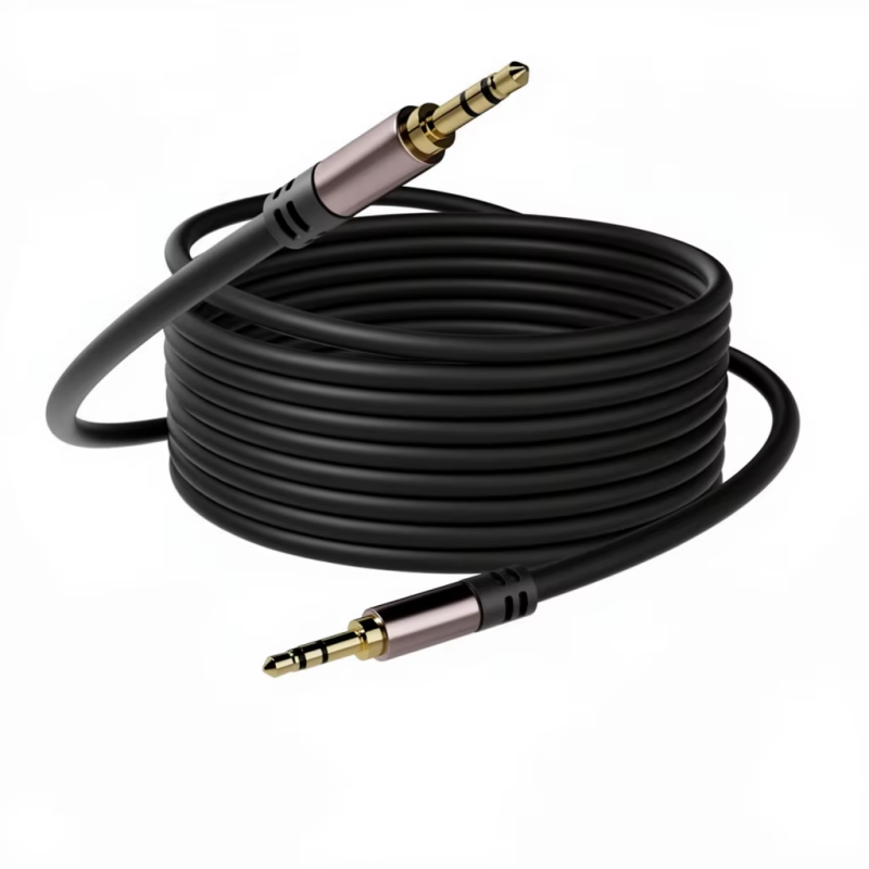 สายสัญญาณเสียงเสริม 10 เมตร แจ็ค 3.5 มม. ทองแดงบริสุทธิ์ป้องกันการรบกวนสำหรับลำโพงหูฟังรถยนต์