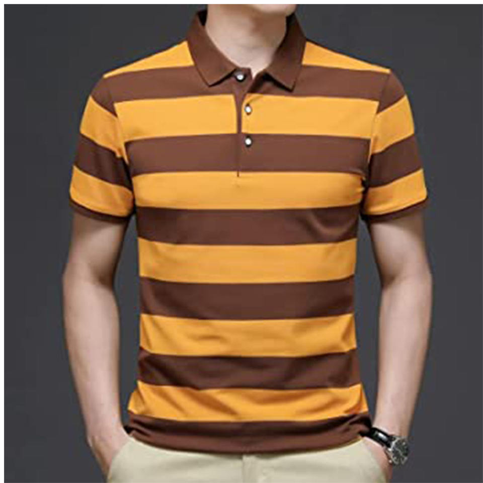 เสื้อโปโลกอล์ฟผู้ชายแขนสั้นเสื้อใส่ออกกำลังกายลายทางสี10% ใหม่ล่าสุด