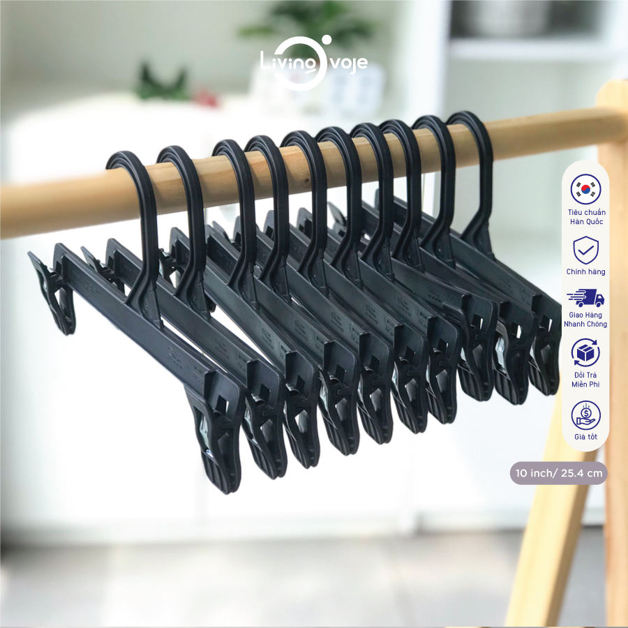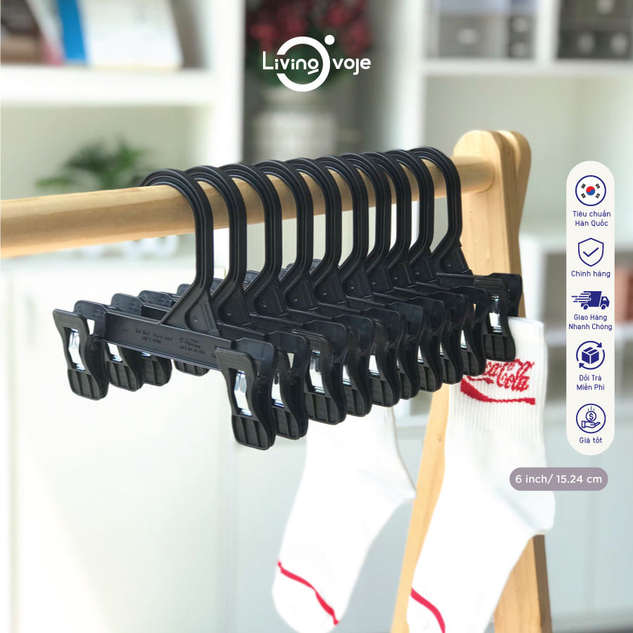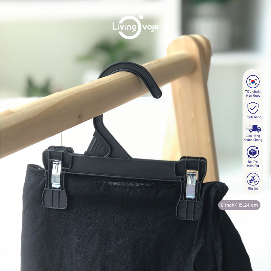 ไม้แขวนเสื้อพลาสติกขนาด 6 นิ้ว พร้อมคลิปหนีบ (ไม่มีแผ่นยาง) แพ็ค 10 ชิ้น ทนทาน ใช้จัดระเบียบตู้เสื้อผ้า ผลิตด้วยวิธีฉีดขึ้นรูป รับผลิตแบบ OEM