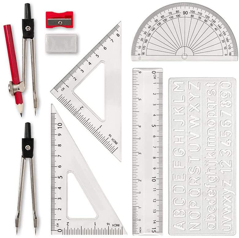 ชุดคณิตศาสตร์เนื้อหา:ไม้บรรทัด, ดินสอ, เข็มทิศ, ยางลบ, shapener