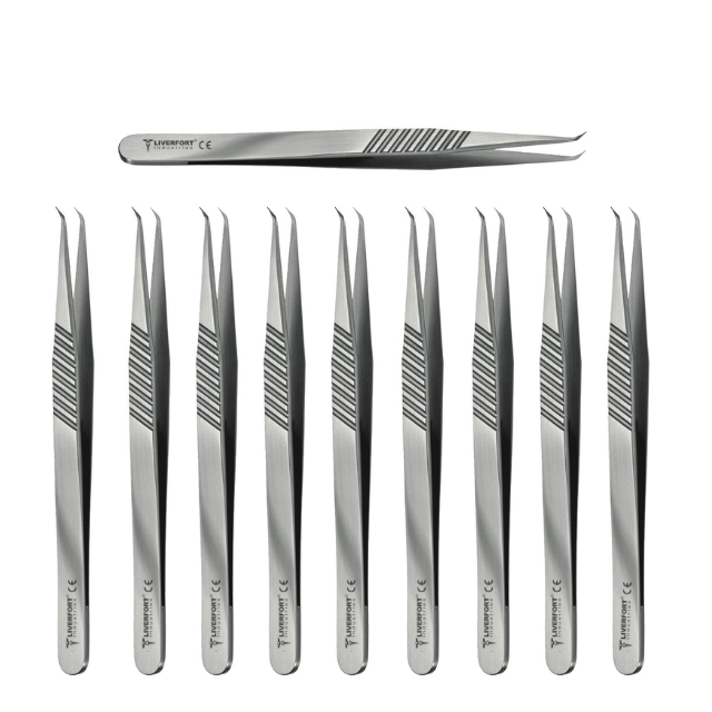 10 Pcs Vessel Dilator 45 Degree Angled Forceps 0.2mm tips 12cm