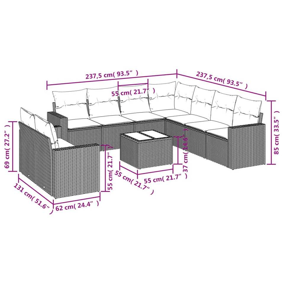 ชุดโซฟาลานบ้านหวายโพลีสีดำ 10 ชิ้นพร้อมเบาะรองนั่งสำหรับชุดสวน