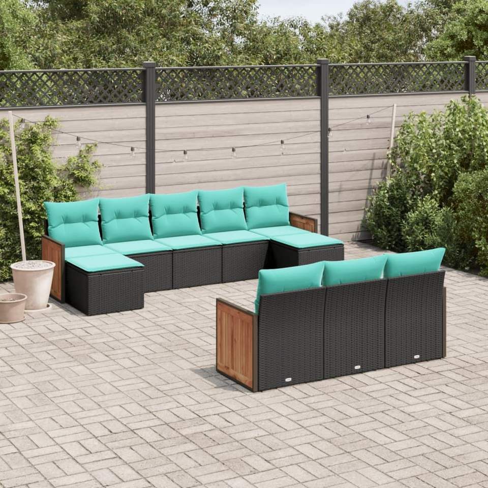 ชุดโซฟาลานบ้านหวายโพลีสีดำ 10 ชิ้นพร้อมเบาะรองนั่งสำหรับชุดสวน