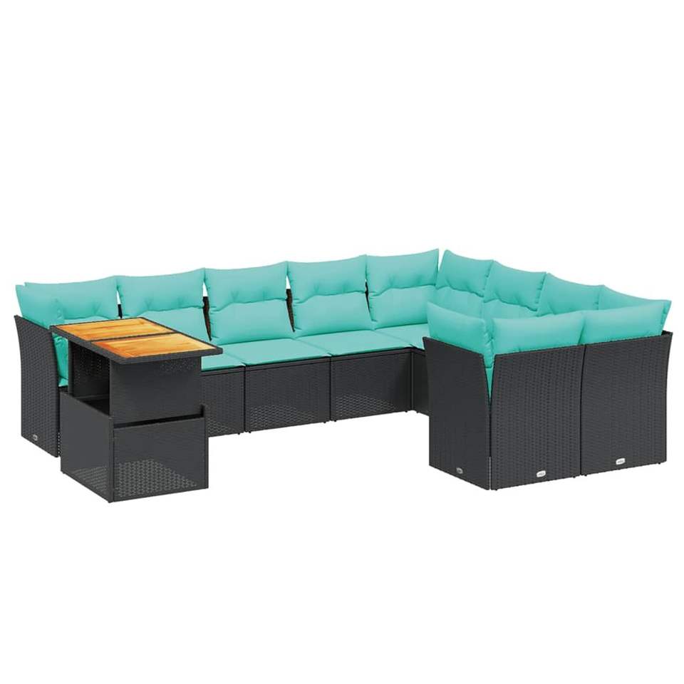 ชุดโซฟาลานบ้านหวายโพลีสีดำ 10 ชิ้นพร้อมชุดเบาะรองนั่งในสวน