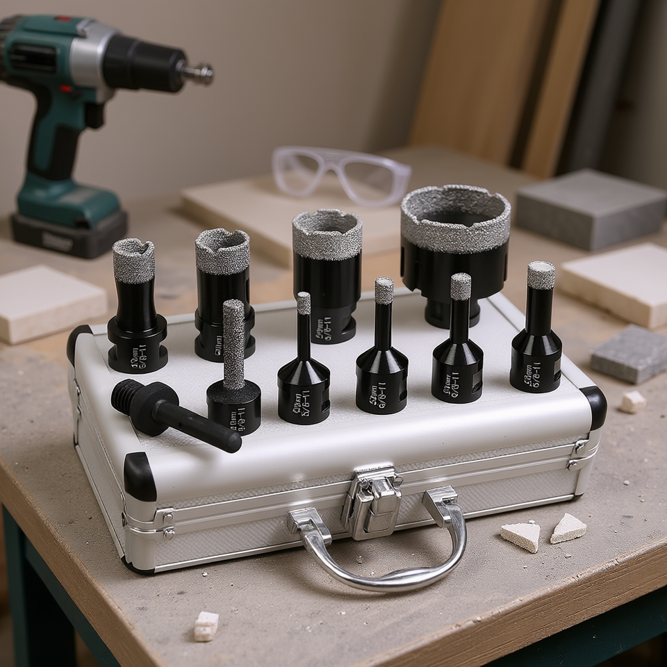 ชุดดอกสว่านเจาะเพชร 10 ชิ้น แบบเชื่อมสุญญากาศ สำหรับกระเบื้อง หินอ่อน หินแกรนิต