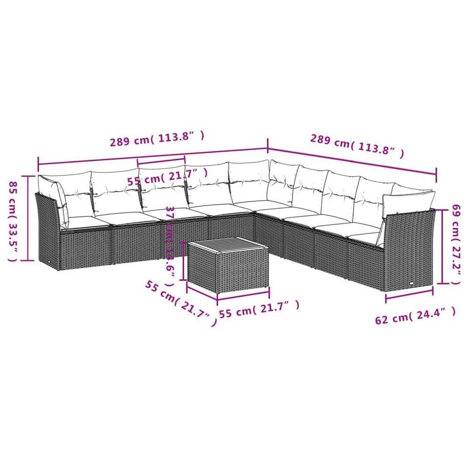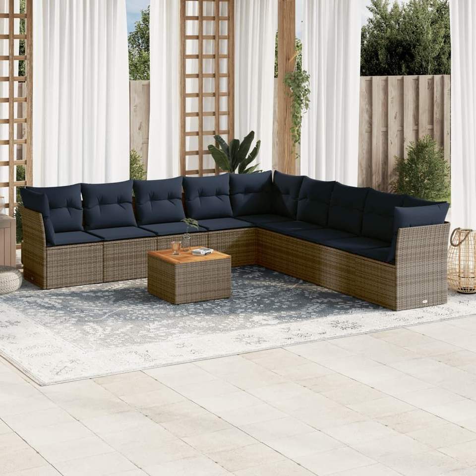 ชุดโซฟาลานบ้าน 10 ชิ้นพร้อมชุดสวนเบาะหวายโพลีสีเทา