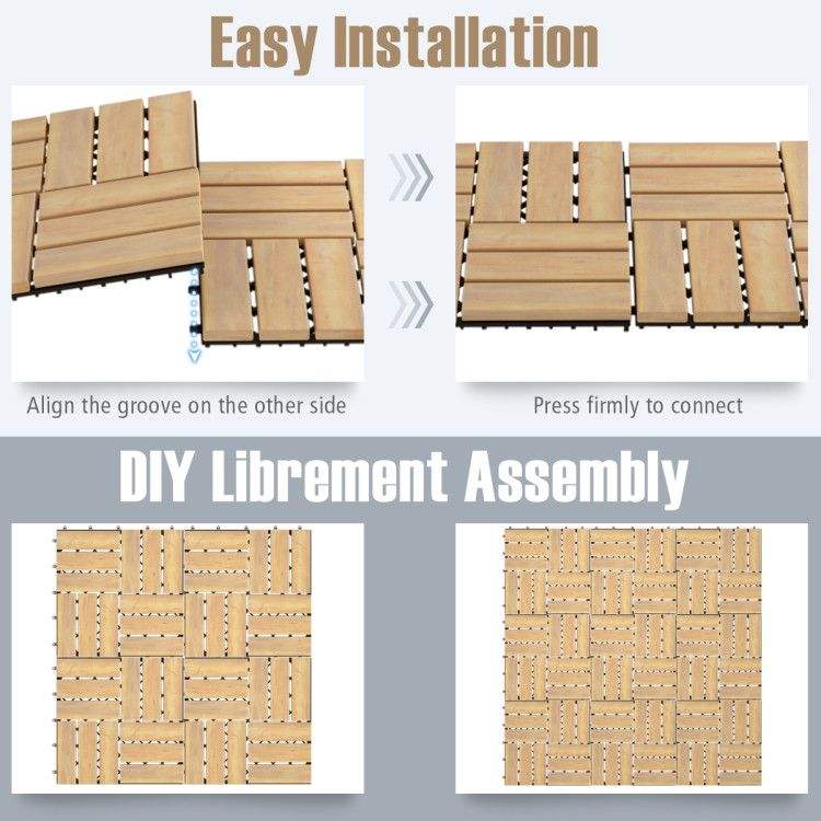 กระเบื้องพื้นไม้กระถินณรงค์แบบประกบกัน ขนาด 12 x 12 นิ้ว จำนวน 10 ชิ้น คุณภาพพรีเมียม สำหรับพื้นที่กลางแจ้ง