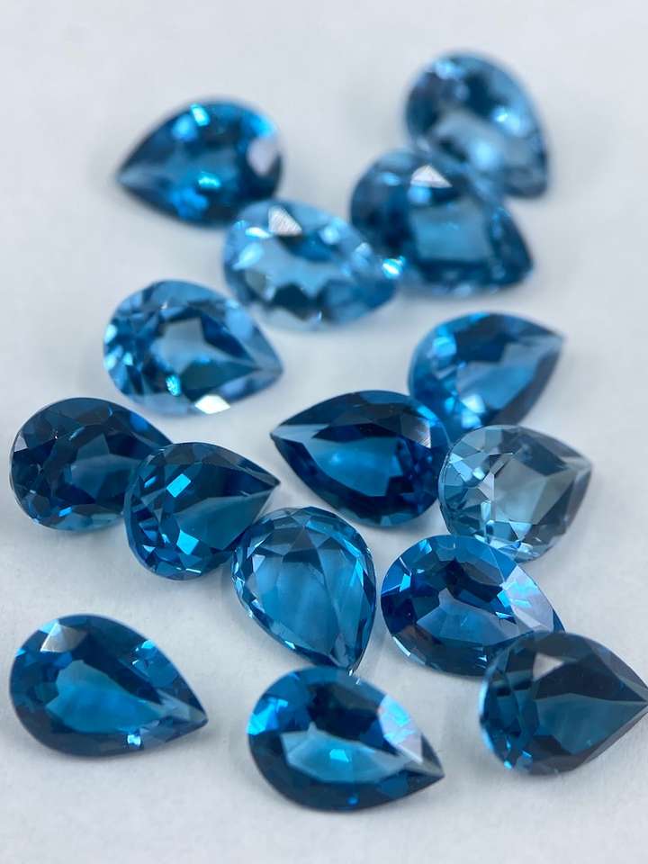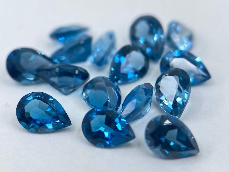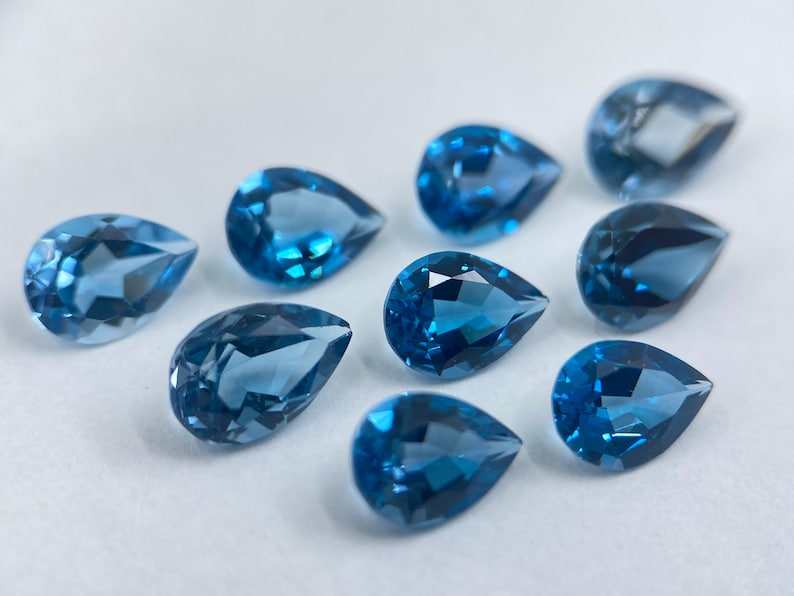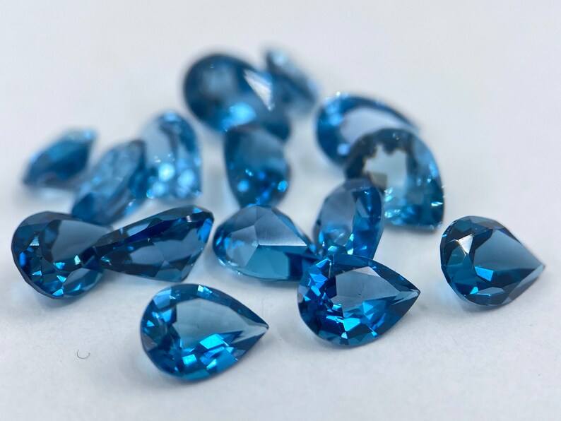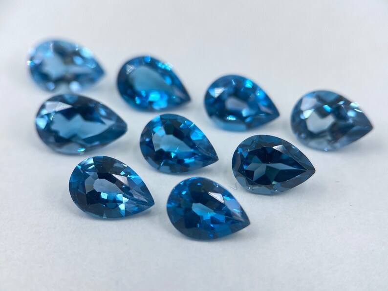 พลอยโทแพซลอนดอนบลูทรงลูกแพร์ขนาด 5x3 มม. เจียระไน 10 เม็ด สำหรับทำเครื่องประดับ