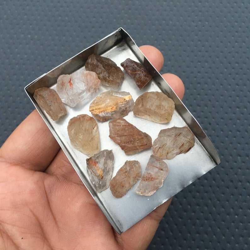 10ชิ้นทองแดงธรรมชาติ rutile ควอตซ์หลวมอัญมณีขนาดใหญ่ไม่ผ่านการบำบัดผมควอตซ์หยาบขายส่งเครื่องประดับ