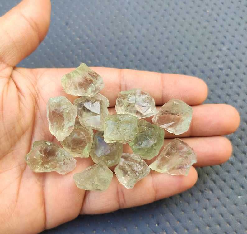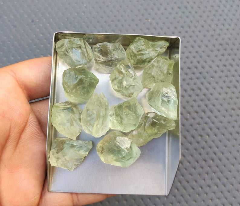 อัญมณีอเมทิสต์สีเขียวธรรมชาติ10ชิ้น,อัญมณีผิวขรุขระขนาดใหญ่ไม่ผ่านการบำบัดคุณภาพการทำเครื่องประดับตัดด้วยมือ