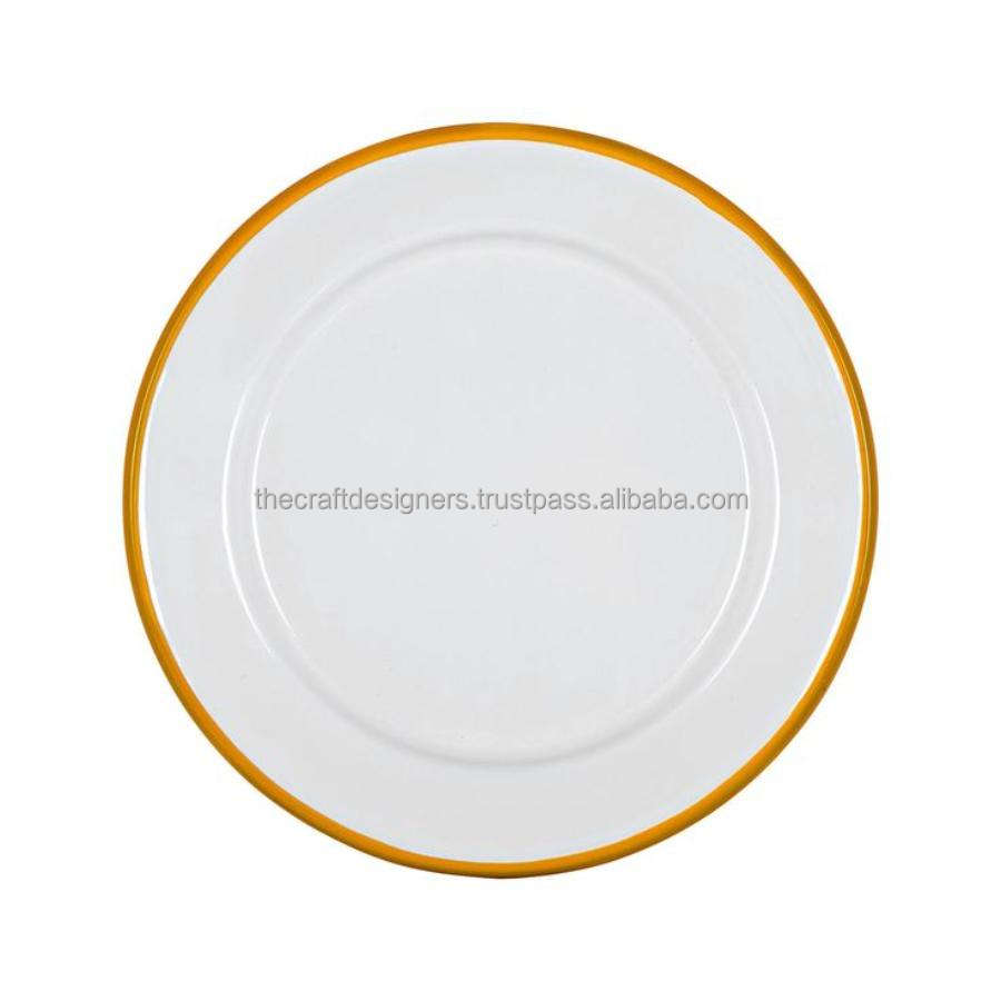 จานรองอาหารทรงกลมขนาด 10 นิ้ว อุปกรณ์ร้านอาหาร จานเคลือบและจานโลหะ ใช้ซ้ำได้ เป็นมิตรกับสิ่งแวดล้อม สำหรับเสิร์ฟอาหาร จานโลหะสั่งทำพิเศษจากผู้ผลิต