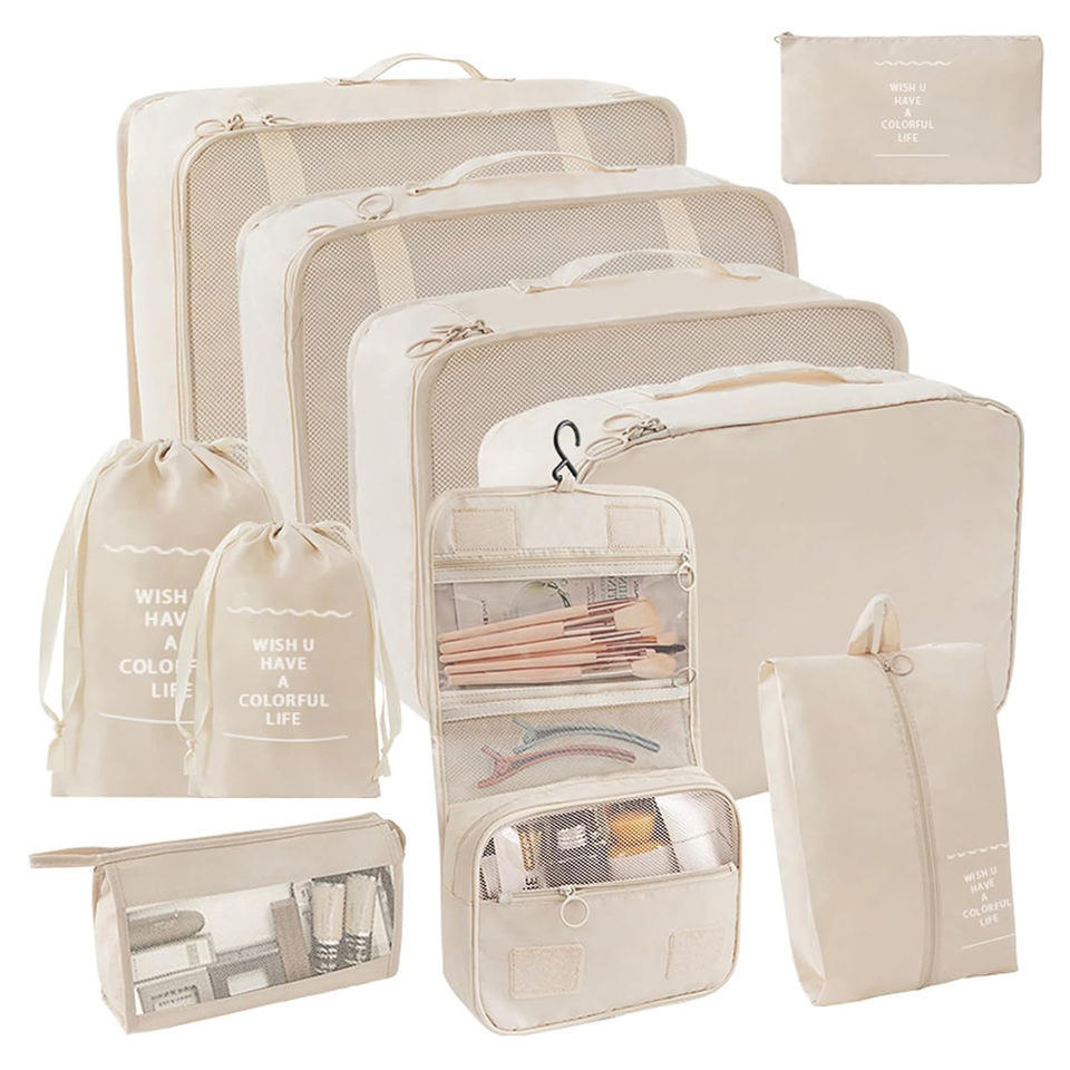ชุดกระเป๋าจัดระเบียบสัมภาระ 10 ชิ้น สำหรับเดินทาง กระเป๋าเดินทางสำหรับผู้หญิงและผู้ชาย ชุดกระเป๋าจัดระเบียบแบบลูกบาศก์