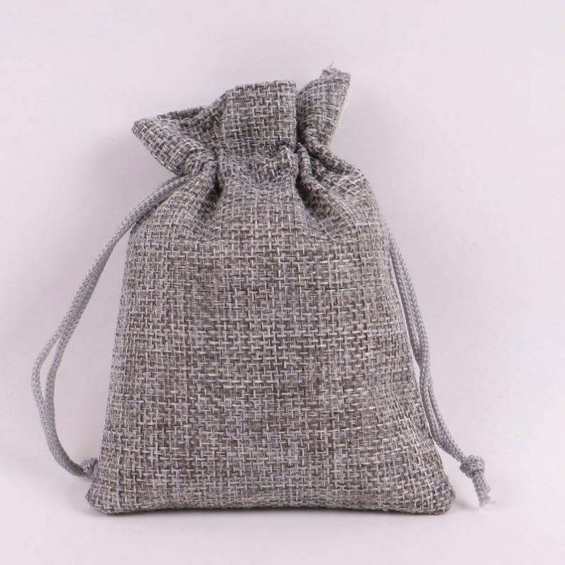 ถุงผ้าป่านออร์แกนิคแบบเรียบ มี 10 ขนาดในสต็อก ถุงผ้าลินินขนาดเล็กแบบมีเชือกผูก ใช้ซ้ำได้