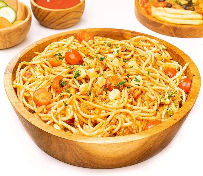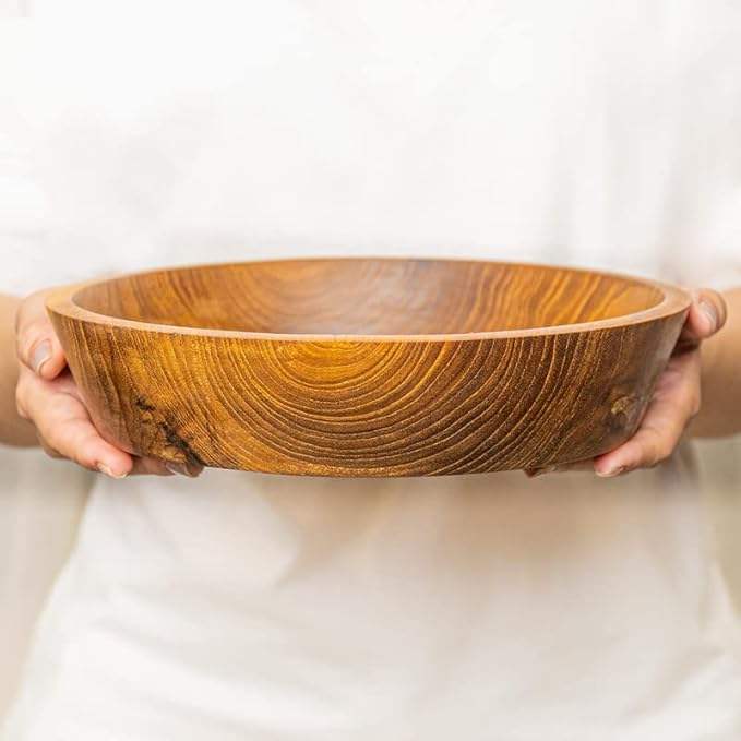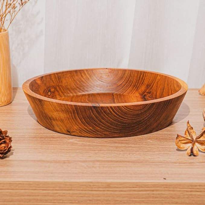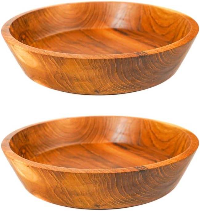 ชามไม้สักจาวา 10 นิ้ว ทรงเฉียง ทำด้วยมือ ทนทานเป็นพิเศษ ชุดหรูหรา สำหรับใช้ในชีวิตประจำวัน งานเลี้ยง และตั้งแคมป์ ใช้ได้ทั้งอาหารร้อนและเย็น