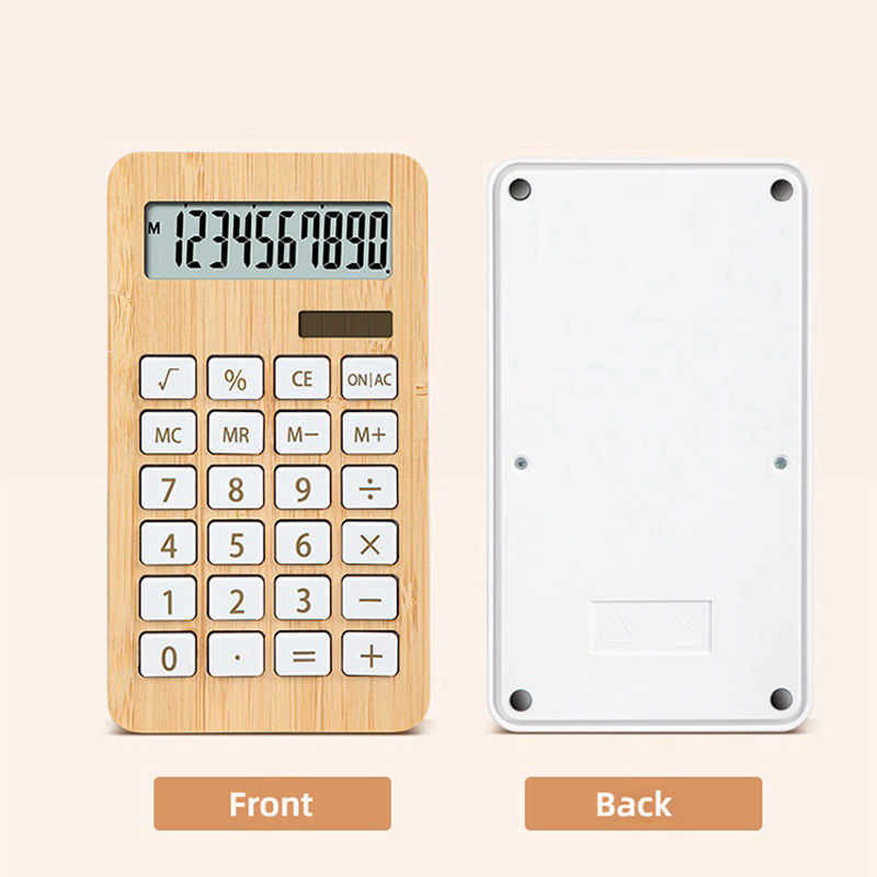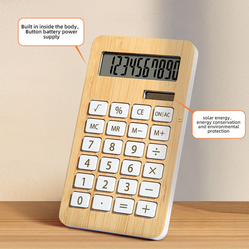 เครื่องคิดเลขไม้ไผ่และไม้ 10 หลัก ดีไซน์สร้างสรรค์ พิมพ์โลโก้ได้ เหมาะสำหรับสำนักงาน สำนักการเงิน ใช้บนโต๊ะทำงาน