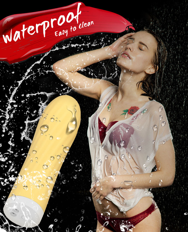 เครื่องสั่นแบบกระสุนขนาดเล็ก 10 ระดับความเร็ว ซิลิโคนกันน้ำ ชาร์จผ่าน USB พร้อมรีโมทแม่เหล็กสีเหลืองและสีดำ สำหรับผู้หญิง