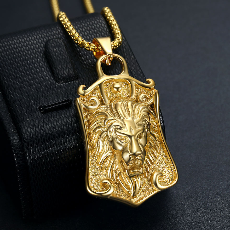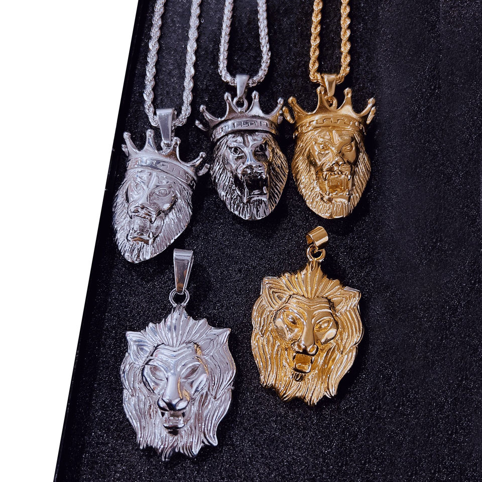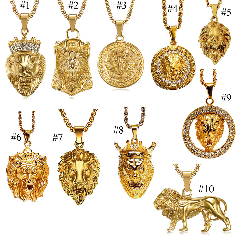 สร้อยคอหัวสิงโตสไตล์ฮิปฮอป 10 แบบ ชุบทอง PVD แนวพังก์ร็อก สำหรับผู้ชาย สร้อยคอจี้หัวสิงโตสแตนเลส สร้อยคอจี้หัวราชาสิงโต
