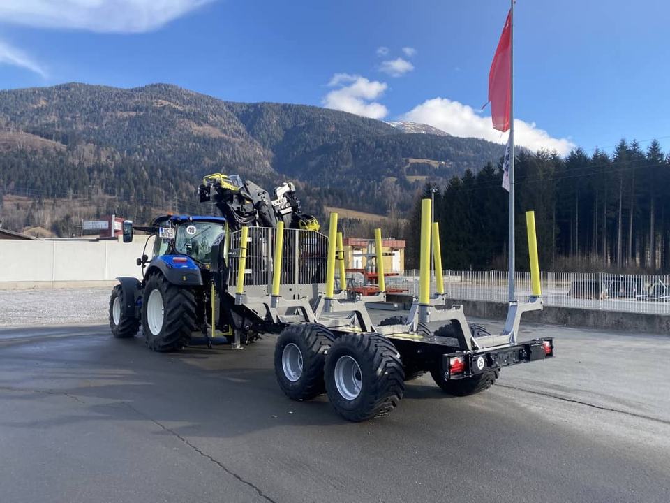 รถพ่วงบรรทุกไม้ซุงสำหรับงานป่าไม้ ขนาด 10 ตัน พร้อมโครงสร้างเสริมความแข็งแรงและเครนไฮดรอลิกสำหรับรถแทรกเตอร์ในฟาร์ม