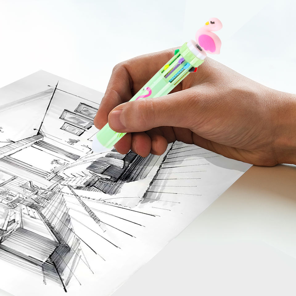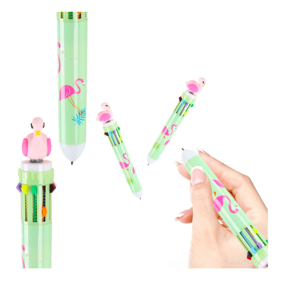 10 in 1 Multi-color Lovely Flamingo Cartoon Student Ballpoint Pens Wholesale Retractable Plastic Custom Logo Print Manufactures